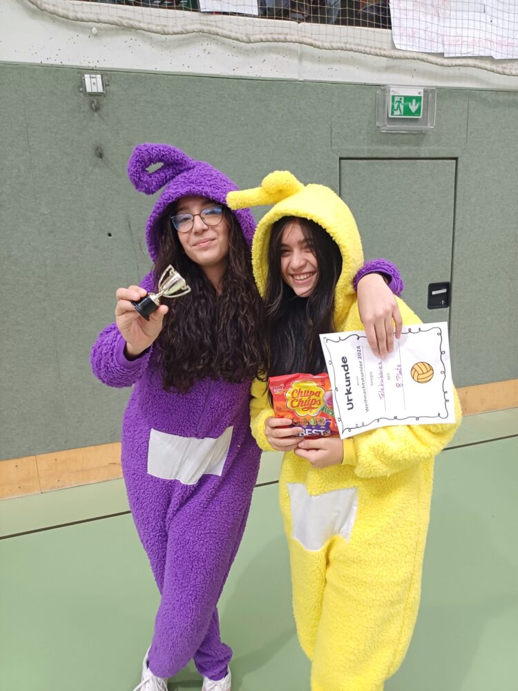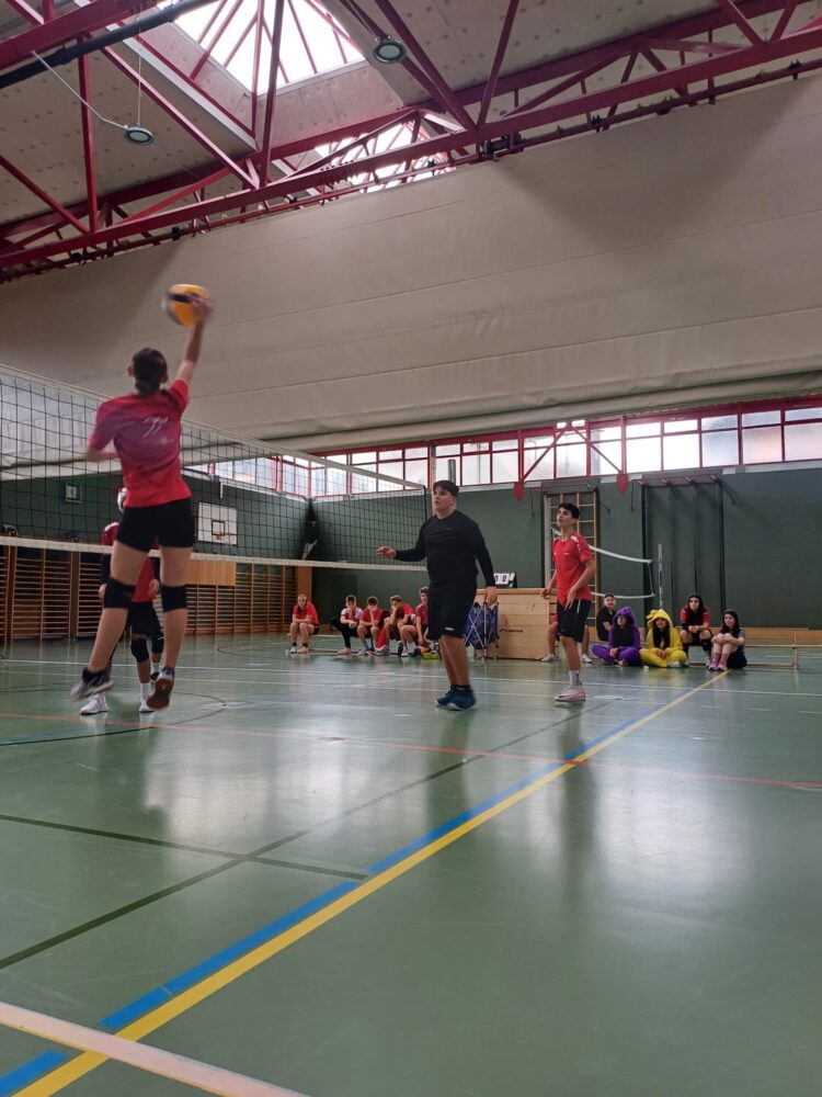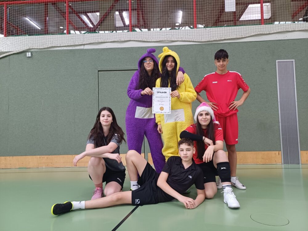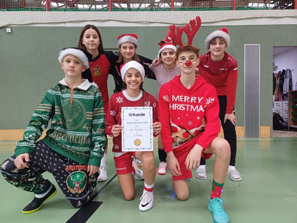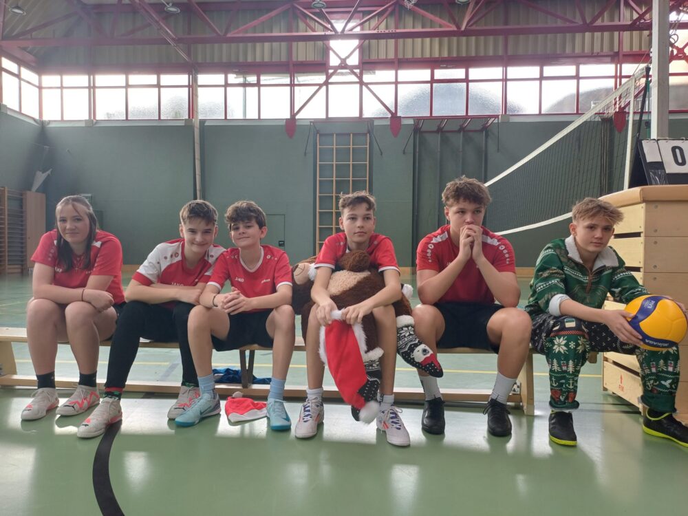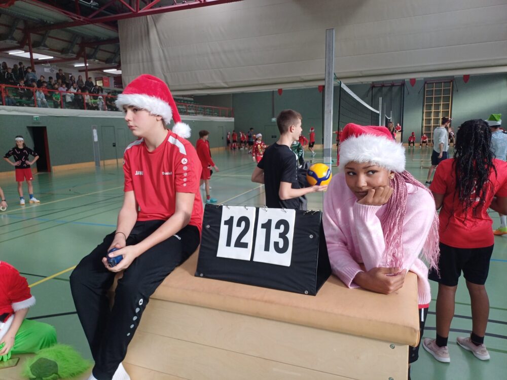 Auch heuer trafen wieder zehn Mannschaften beim mittlerweile schon traditionellen Volleyballturnier in der Turnhalle aufeinander. Dem Anlass entsprechend präsentierten sich sehr viele Teilnehmerinnen und Teilnehmer weihnachtlich gekleidet, Weihnachtsmannmützen und Weihnachtspullis sorgten für optische Leckerbissen auf den drei Turnierfeldern. Und obwohl sich das sportliche Können unserer Schülerinnen und Schüler auf sehr hohem Niveau bewegte, stand letztlich für alle der Spaß am Spiel und der Bewegung im Vordergrund.