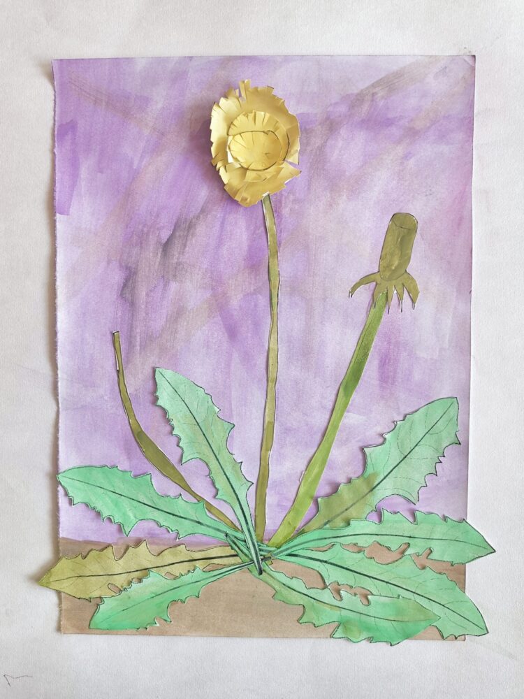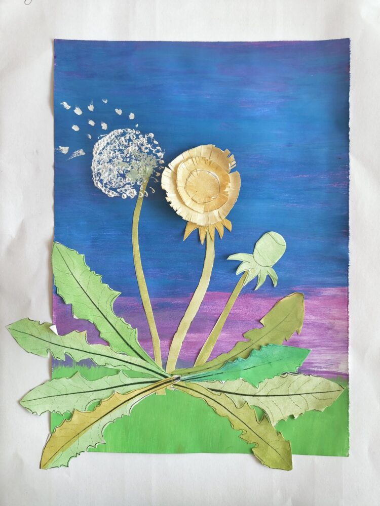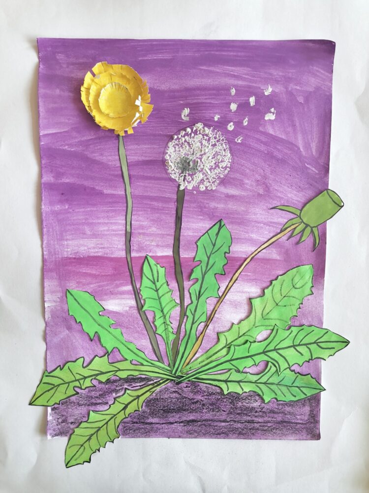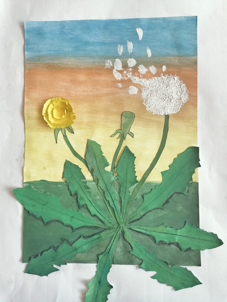 Zuerst haben wir uns den Löwenzahn vorgenommen – in gleich drei Entwicklungsstadien: vom frechen Gelbkopf über den flauschigen Fallschirmträger bis zur nackten Stängel-Tragödie. Alles fein säuberlich auf Papier gebracht.