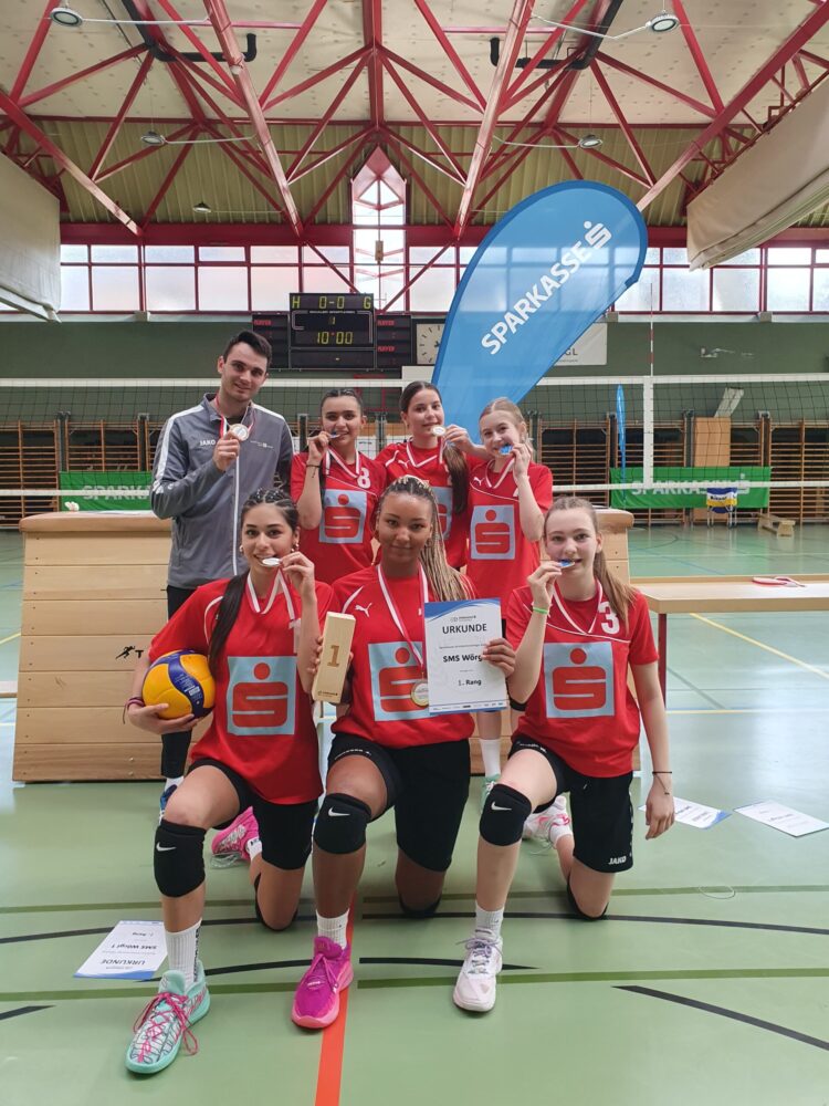 Nach 14 Spielen und 28:0 Sätzen konnten sich am Mittwoch im Landesfinale „dahoam“ an der SMS Wörgl unsere Volleyballmädels souverän mit einem 2:0 Sieg gegen die Mittelschule Neustift und 24 weitere Mannschaften durchsetzen. Wir sind besonders stolz auf die Leistung der Mädchen und freuen uns darauf, Tirol Ende April bei den Bundesmeisterschaften in Spittal an der Drau würdig vertreten zu dürfen.