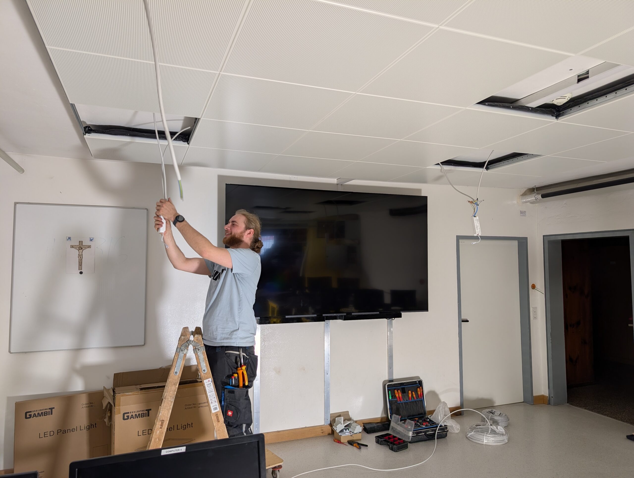 Während der Osterferien wird der Informatikraum modernisiert. Der Raum erhält eine Lärmschutzdecke sowie moderne Beleuchtung, wodurch eine deutlich angenehmere Arbeitsatmosphäre entsteht. Schülerinnen und Schüler sowie Lehrkräfte profitieren künftig von besseren Bedingungen für konzentriertes und produktives Arbeiten.